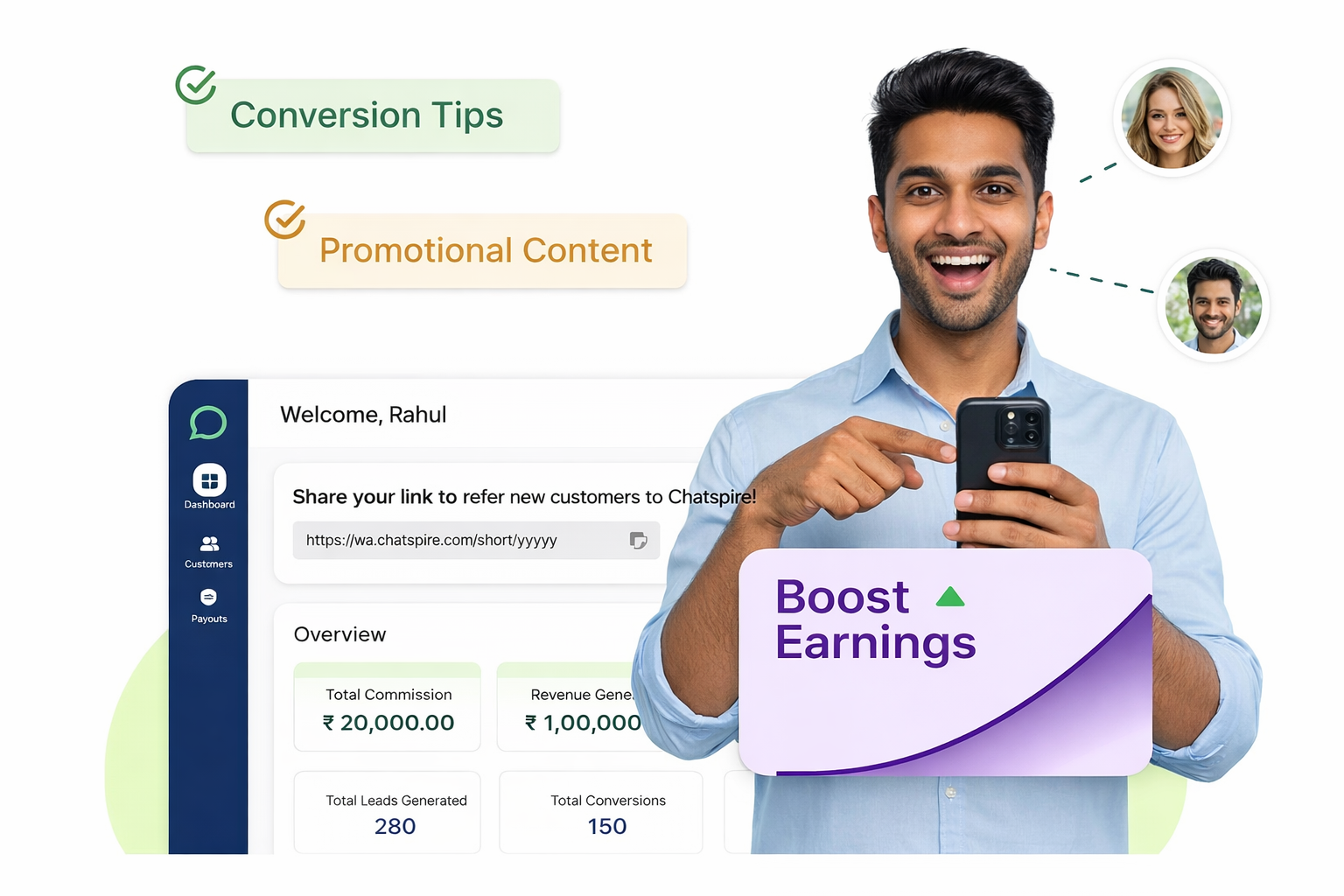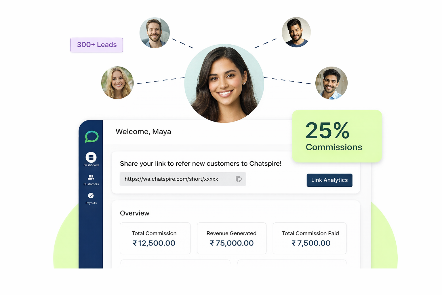 Earn ongoing commissions from customers you refer to the Chatspire platform and build a steady stream of recurring revenue.