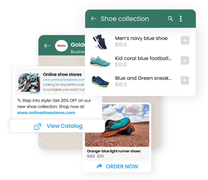 Sales teams and chatbots can send products or full catalogs directly inside WhatsApp conversations.